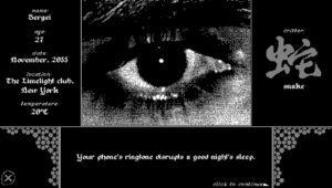 PC, Mac, Linux, demo I had hoped this demo version of the forthcoming Critters For Sale would have been slightly longer, but I’m hooked in either way. In fact, in its brevity ( about twenty minutes if you go back and find the possible deaths) it almost feels like a satisfying surrealist short. Which is … Continue reading Critters For Sale: Snake