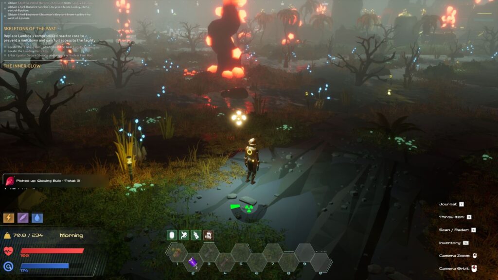 And yes, if you’re thinking Subnautica, I’m pretty certain that’s a primary inspiration here. Although this is a significantly dryer, chattier game. Maeve and Roland frequently exchange banter, their Scottish accents a rare treat in video games. Maeve’s voice is delightful, and I’m fairly certain many will enjoy Roland’s exuberance a bit more than I did. He sounds very much like David Tennant at his most excited, and that isn’t something I particularly enjoy when Tennant does it either, but I’m aware I’m in the minority. Both are extremely good performances, and they’re just two of many voices you encounter, which is all the more impressive when you learn this game is the work of a solo developer.