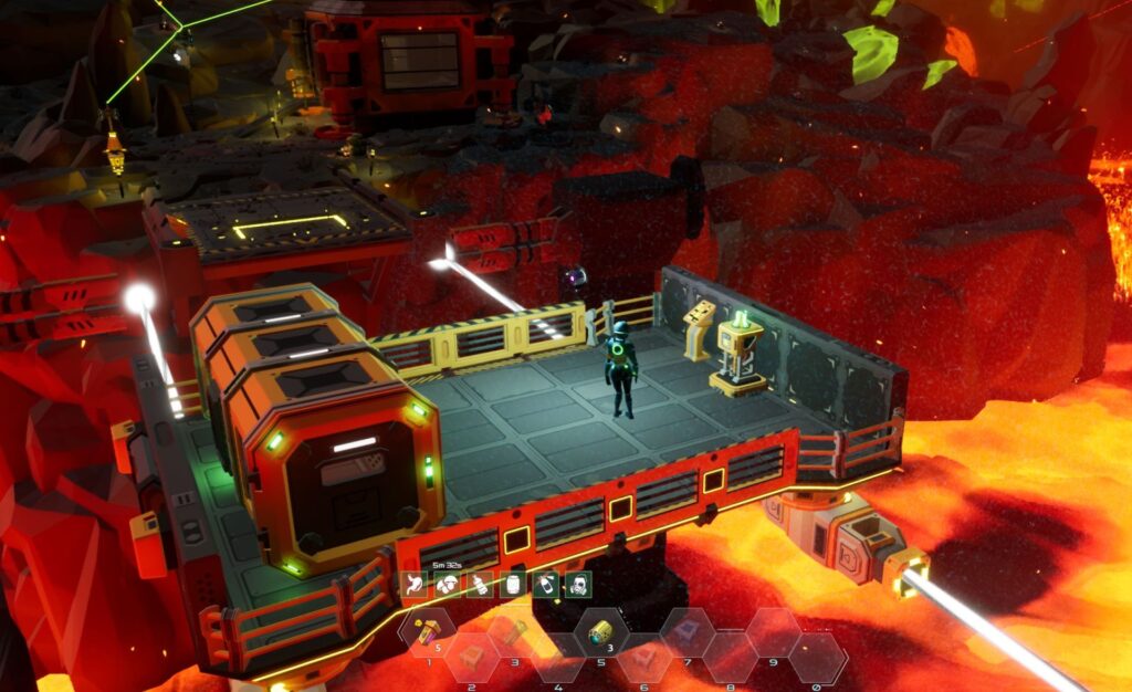 However, one criticism of a game that is being frequently updated in response to player feedback is a bit too much back-and-forth in the first half. No matter where you set up your base in the relatively small opening surface area, you’re going to spend too much time running from one place to another to ferry rocks. In the second half of the game there are all sorts of splendid shortcuts that become available for the farther reaches, but I think it might be an idea for dedicated research to perhaps allow some form of transport system after a good few hours. (There are abandoned drills you can power up, and then set up with drones to deposit ores to your base, but it doesn’t come close to replacing all the running around.)